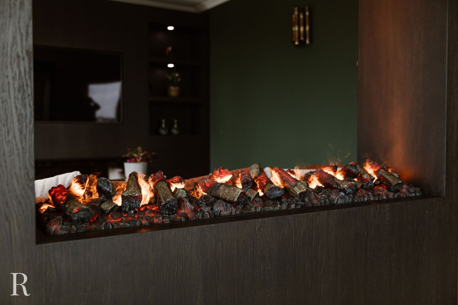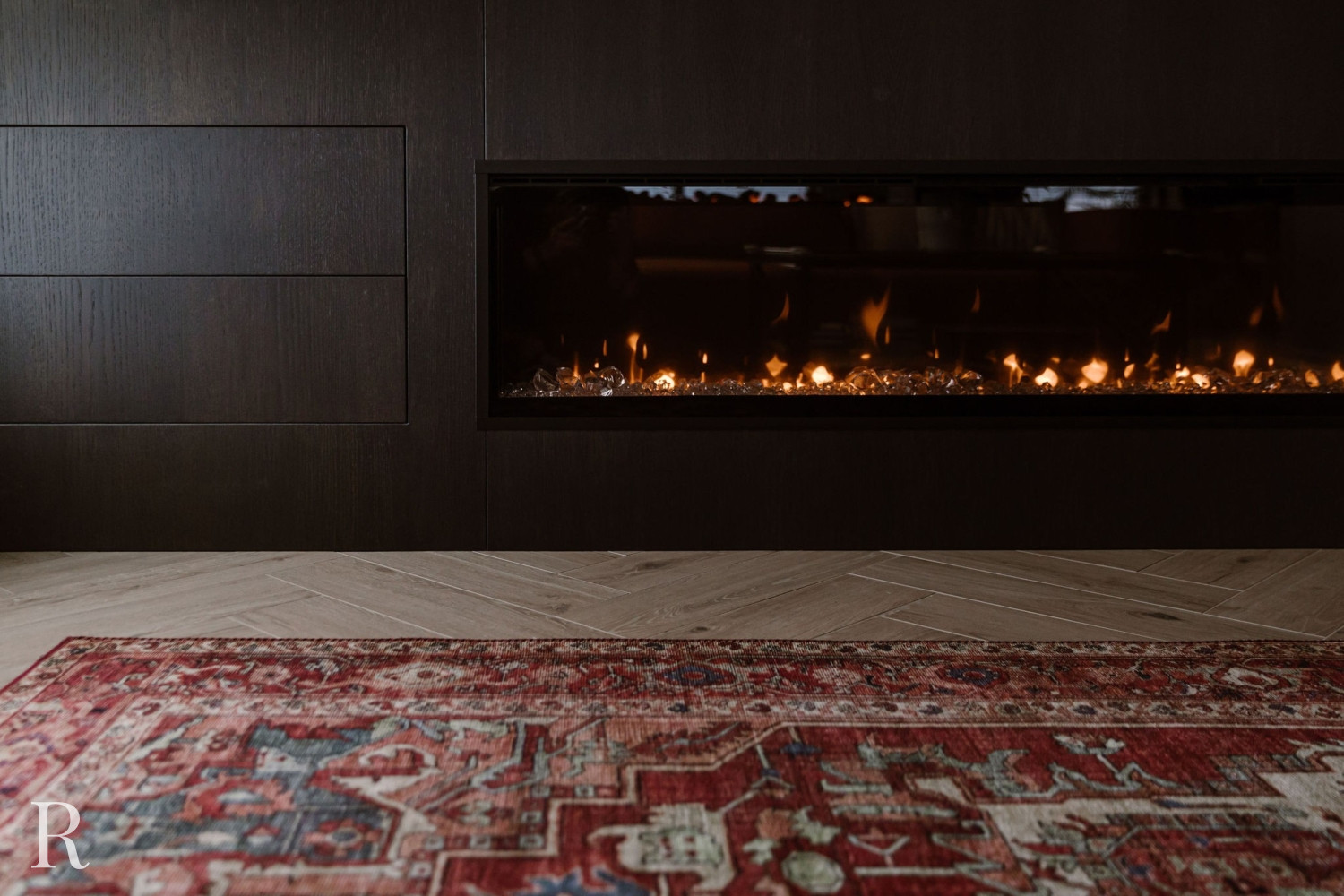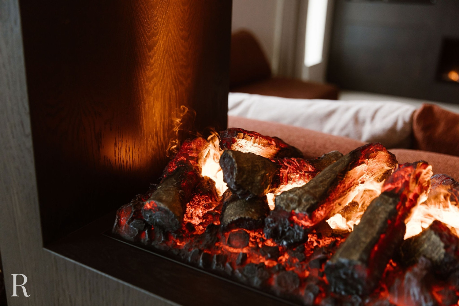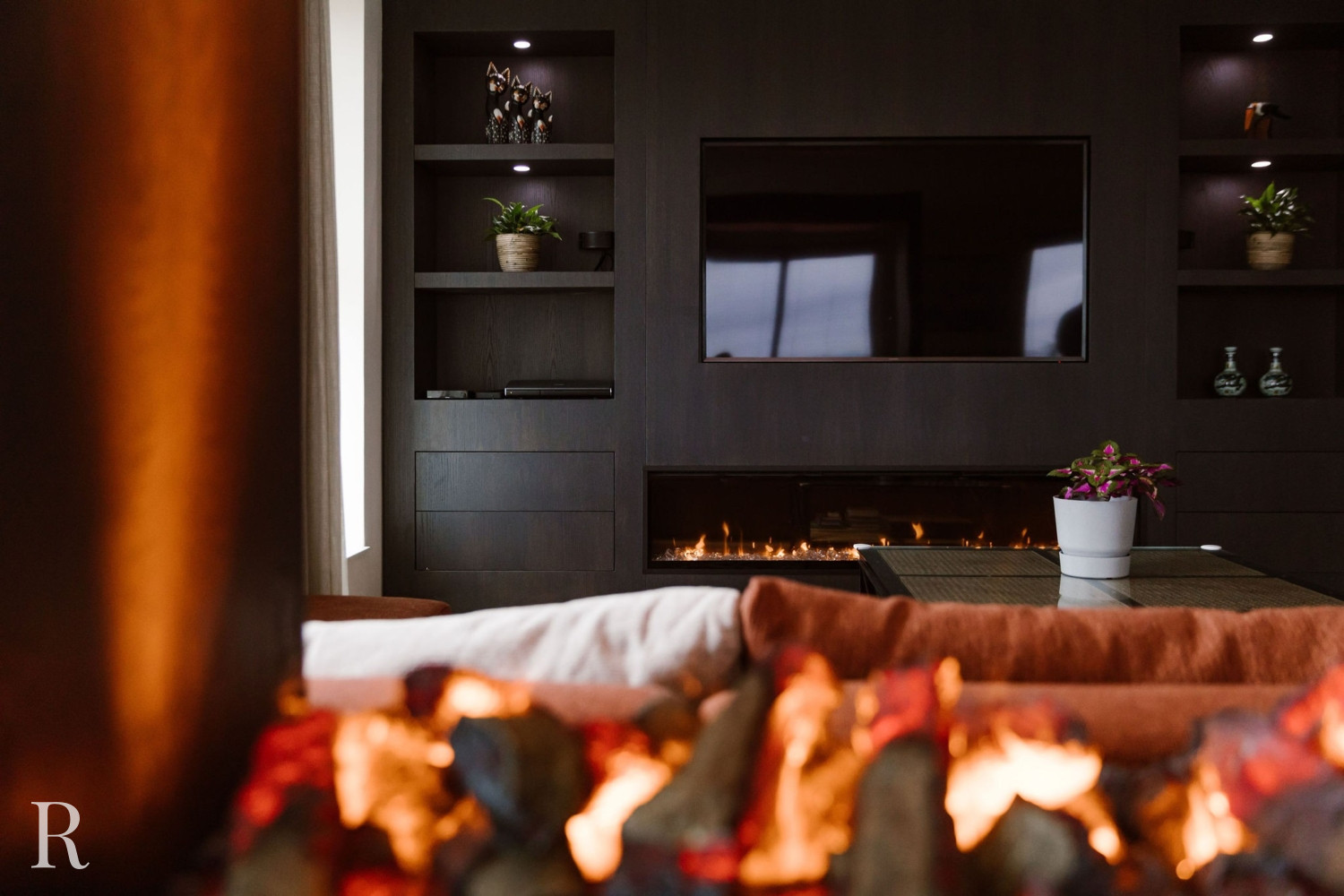 In Almere bouwden we niet één, maar twee luxe tv-wanden. De losstaande wand met sfeerhaard past perfect in het plaatje!