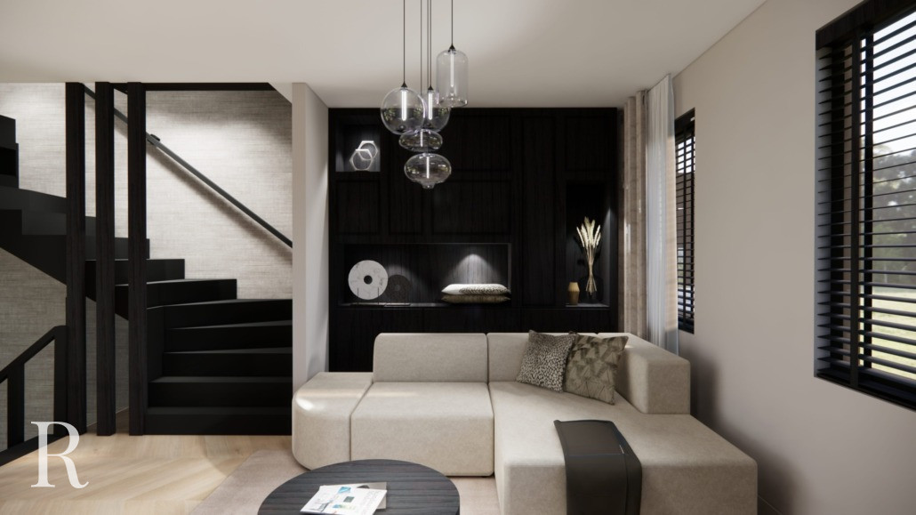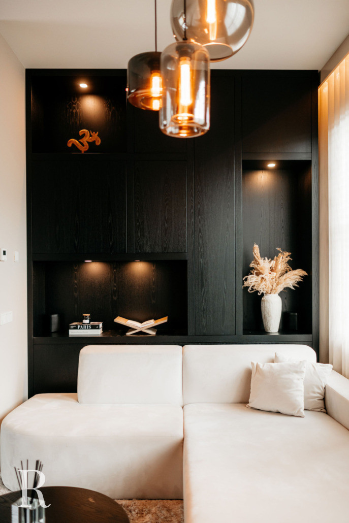 In Almere realiseerden we een volledig interieurdesign, inclusief cinewall, twee maatwerk kasten en salontafel.