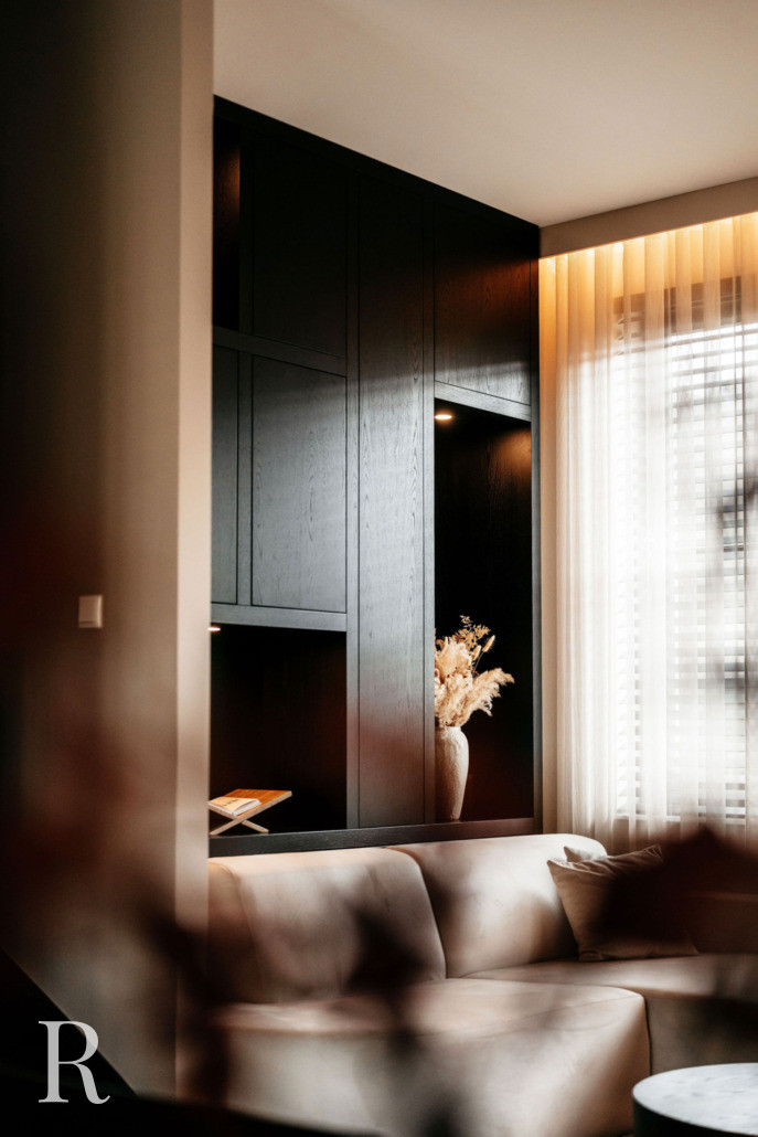 Dit is geen interieur dat zich opdringt. Het fluistert. In textuur, schaduw en precisie. Alles is doordacht. Je voelt het: er is oog voor detail en liefde voor kwaliteit.