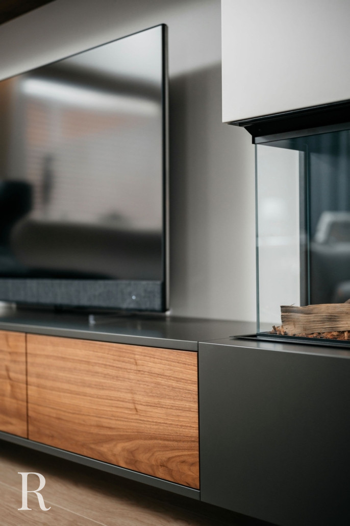 In Bennekom plaatsten we een antraciet tv-meubel met sfeerhaard. Een prachtige combinatie!