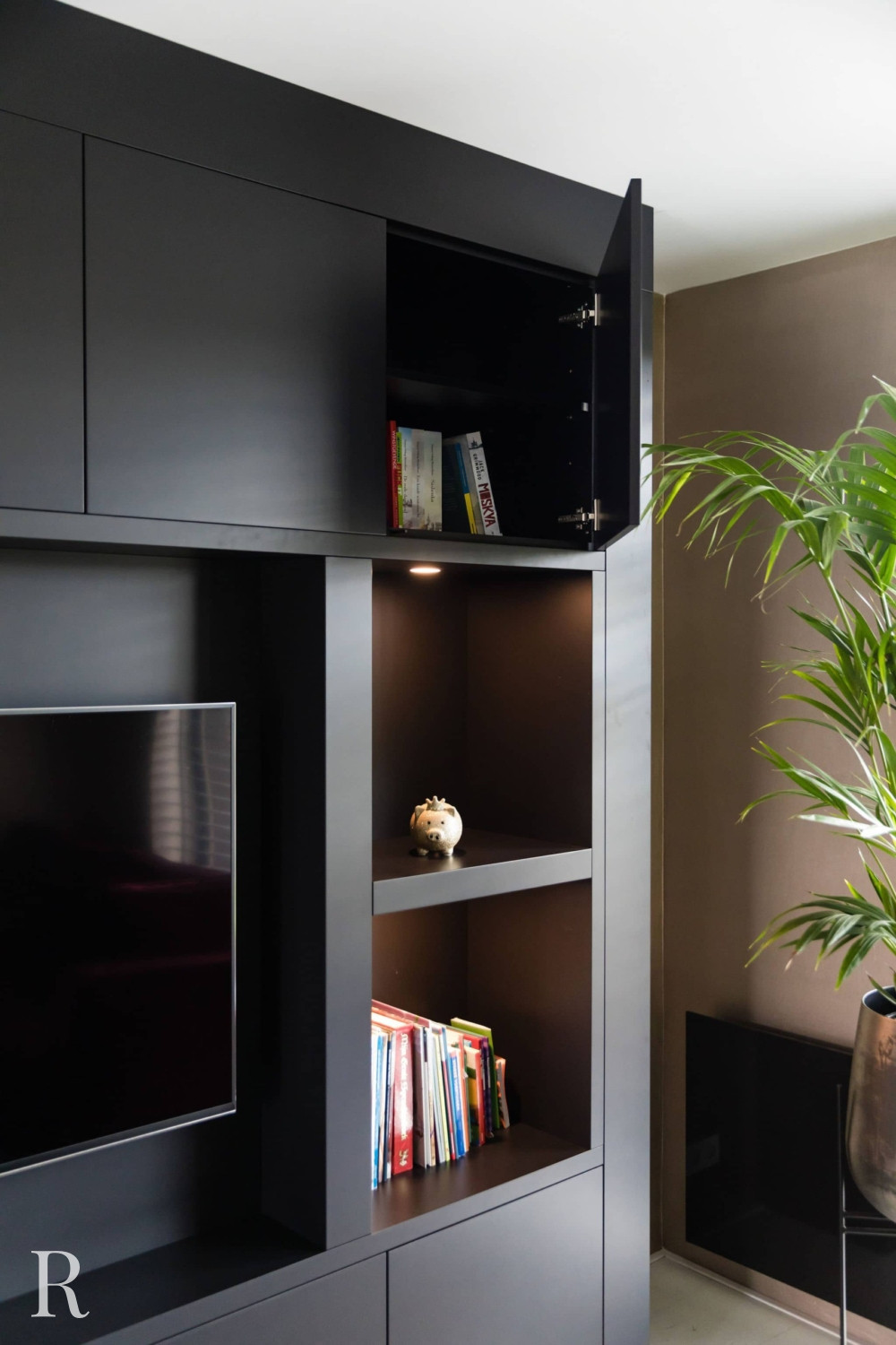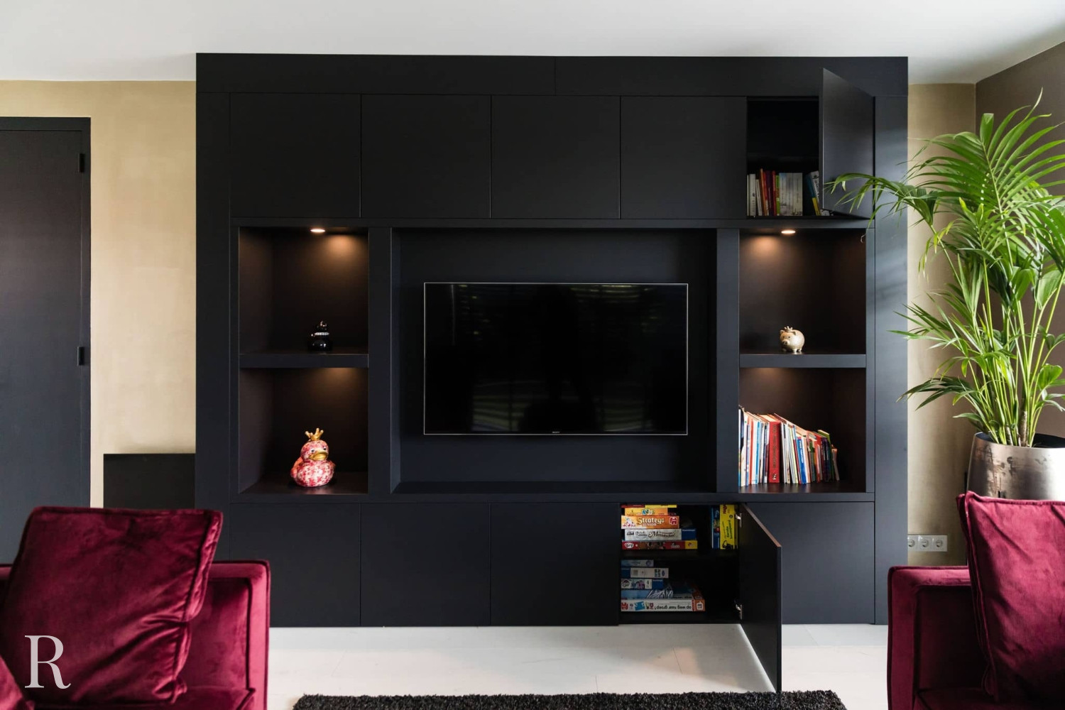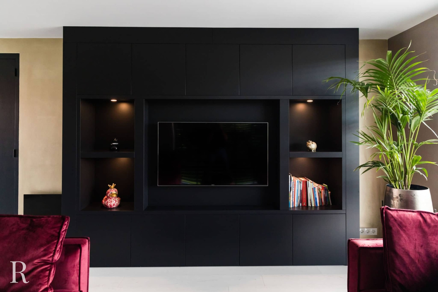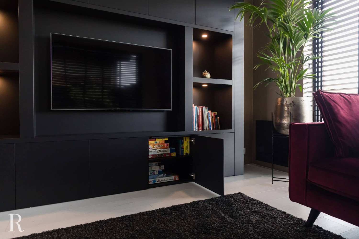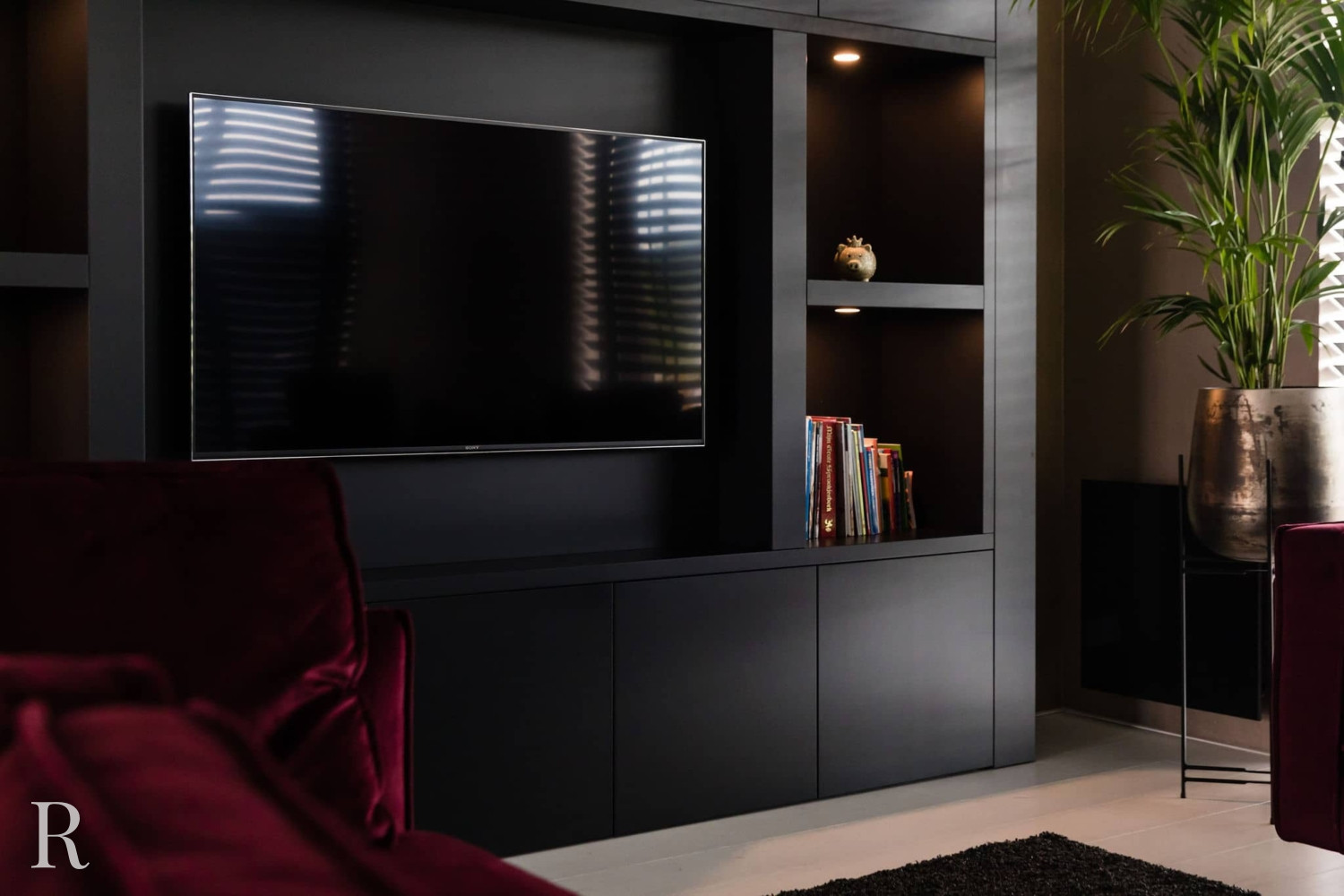 Deze mooie tv-wand stelden we samen voor een klant in Meppel. Een uniek item en door de vele vakken ook praktisch.