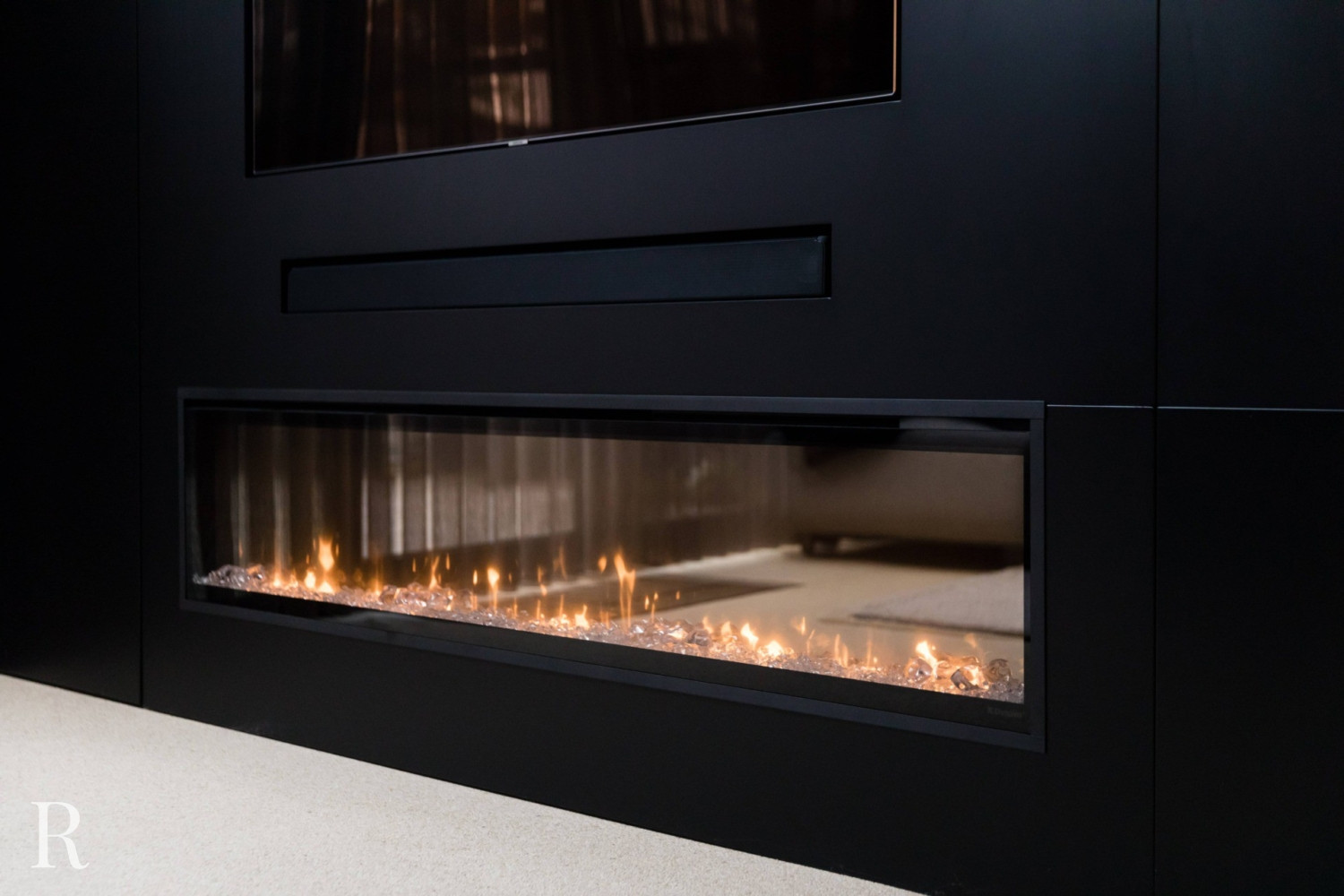 In Nijmegen was het resultaat een schitterende tv-wand, compleet met sfeerhaard, flatscreen tv en soundbar. Aan de zijkant maakten we een aantal strakke vakken met sfeerverlichting en ruimte voor accessoires. Is u ook de ingebouwde kast opgevallen? U kunt er van alles in kwijt! Het maakt de televisiewand niet alleen uniek, maar ook praktisch.