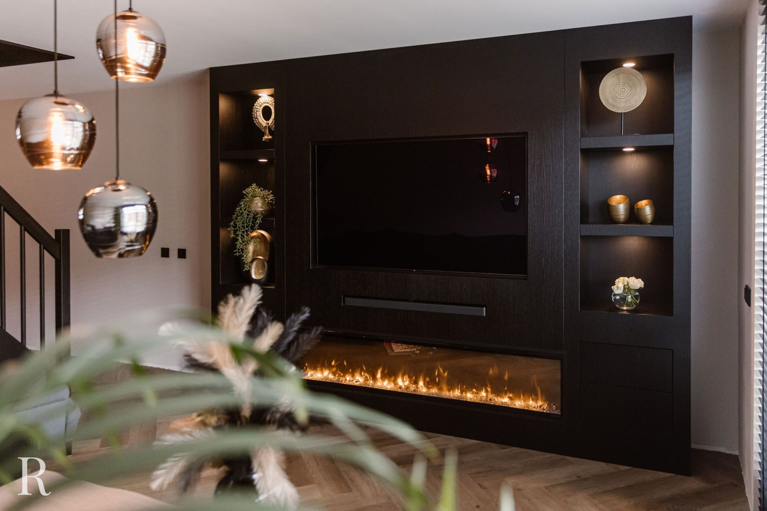 In Spijkenisse staat een pareltje van een tv-wand! Deze zwarte cinewall is niet te missen.