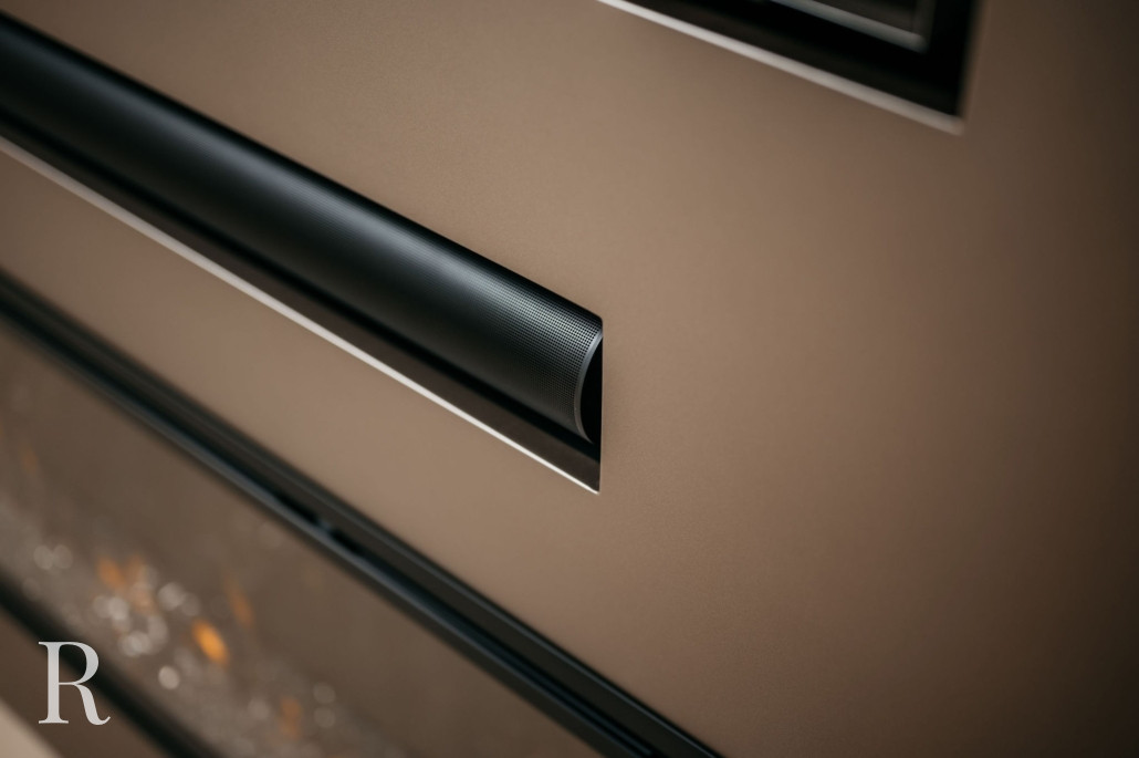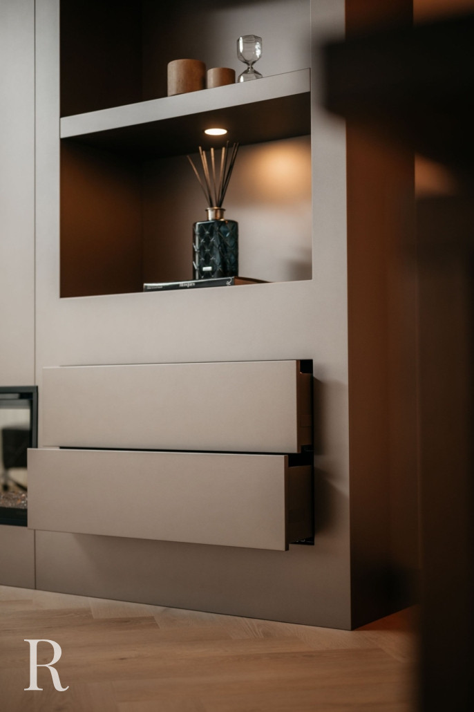 In Spijkenisse plaatsten we een taupe cinewall met sfeerhaard. Strakker kan niet!