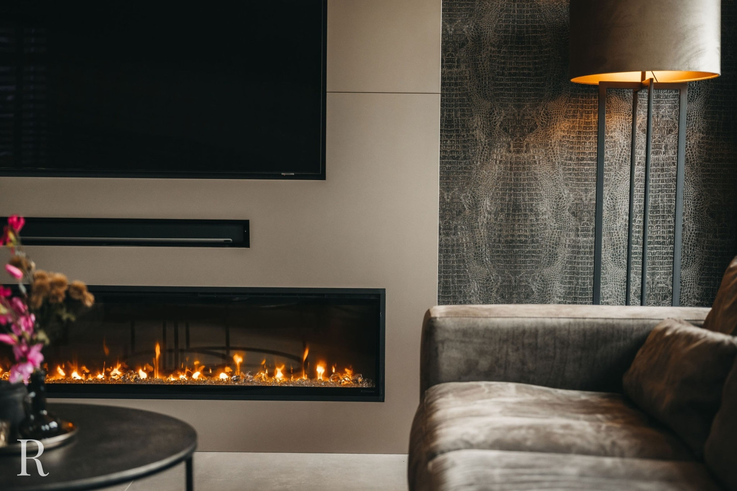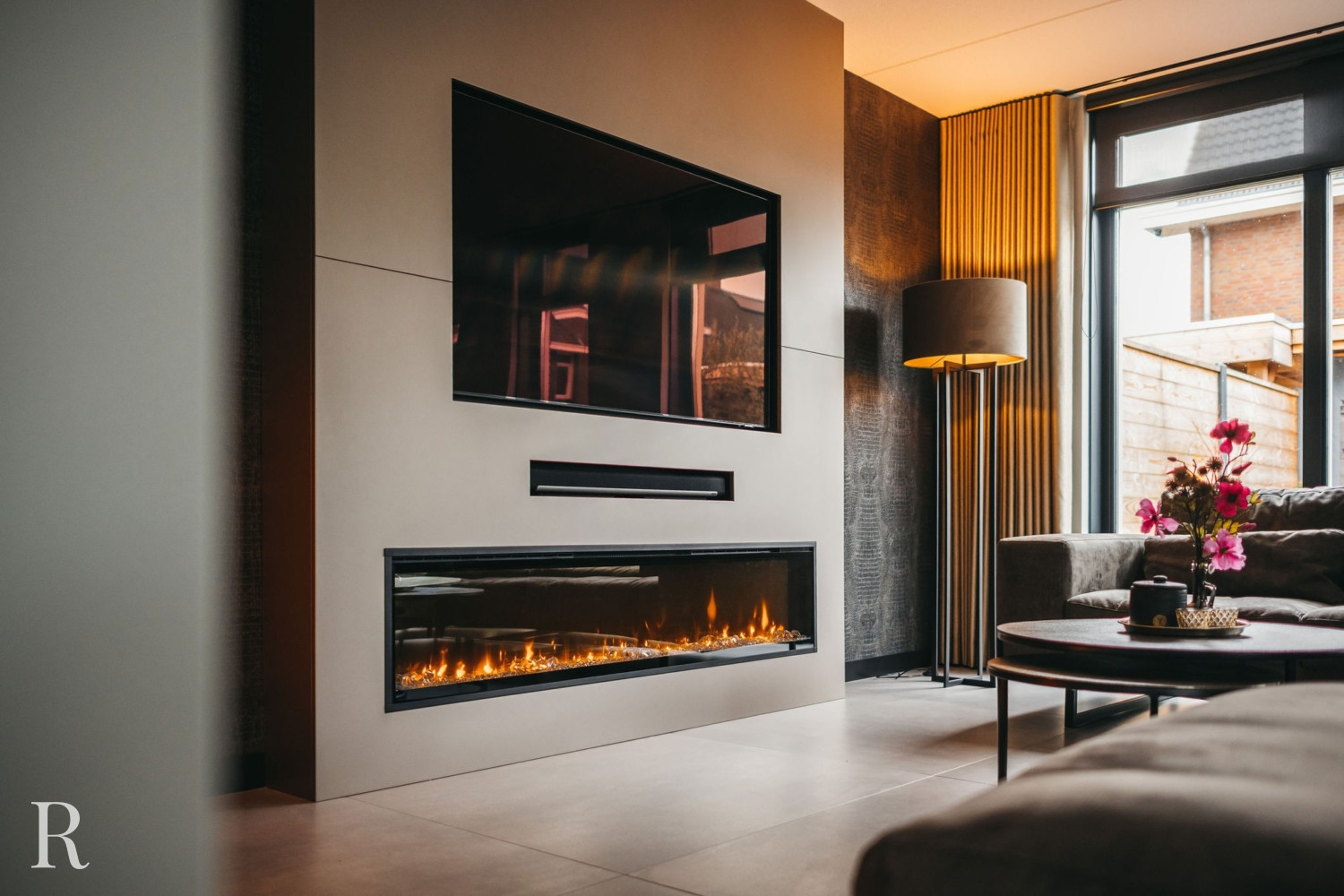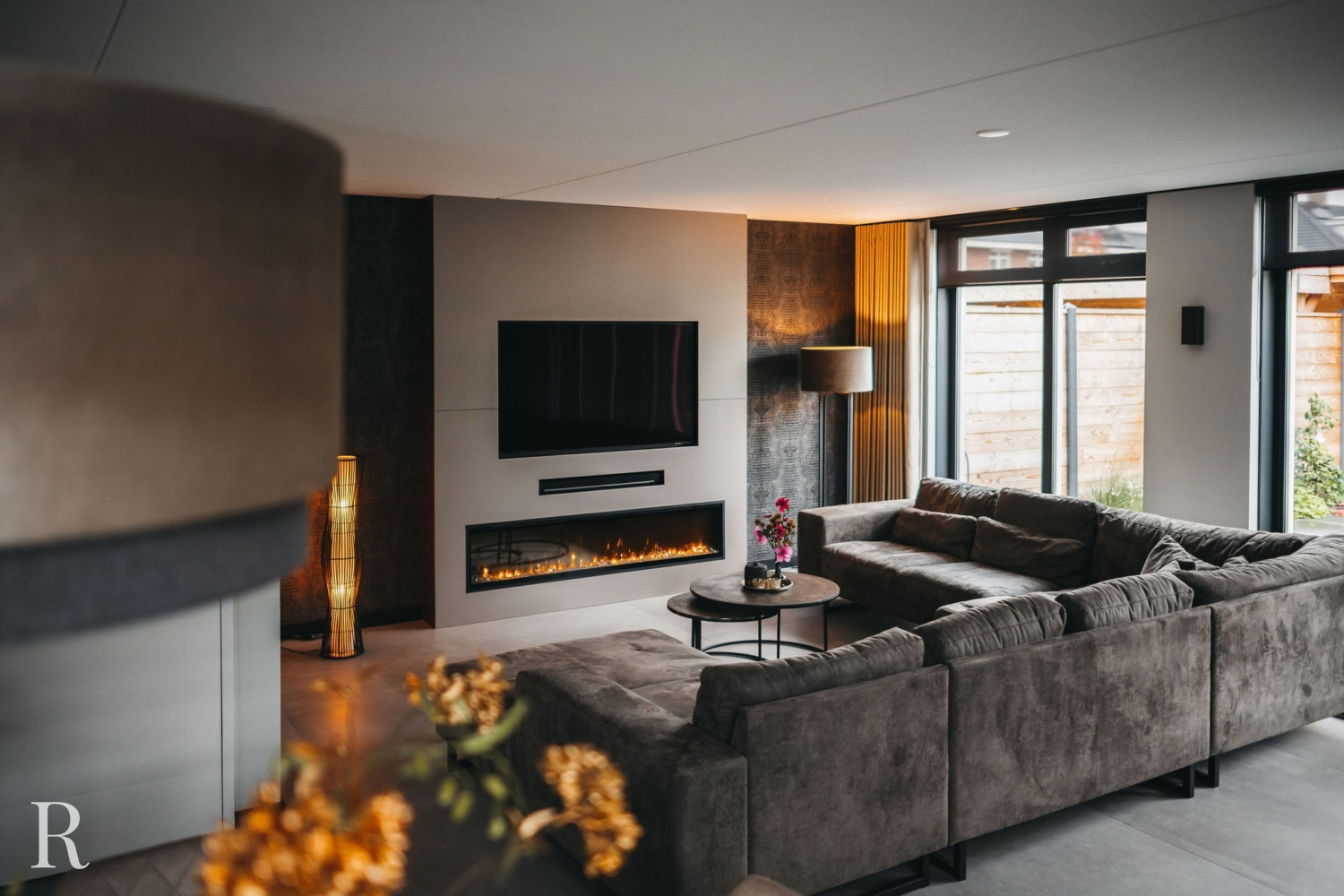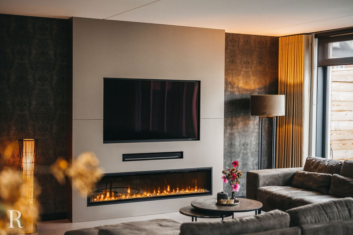 Taupe past in ieder interieur en heeft een rustige uitstraling. Dat maakt dat deze cinewall naadloos in deze woning past. Het interieur van deze inwoners van Vlaardingen voelt warm aan en daar draagt de sfeerhaard ook zeker aan bij. Letterlijk en figuurlijk.