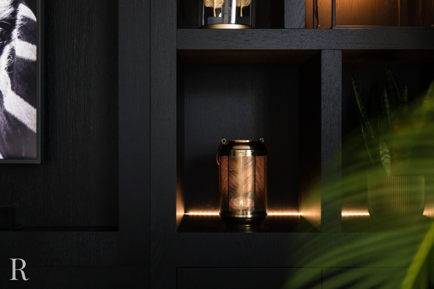 Deze klant wilde graag ook sfeervolle verlichting in de tv-wand, ruimte voor persoonlijke accessoires en opbergmogelijkheden. Dat realiseerden we allemaal! Natuurlijk werkten we snoeren en kabels volledig weg voor een strakke afwerking. Samen met een stylist bepaalden we de muurkleur. Het resultaat is een cinewall die helemaal in het interieur past. Picture perfect!