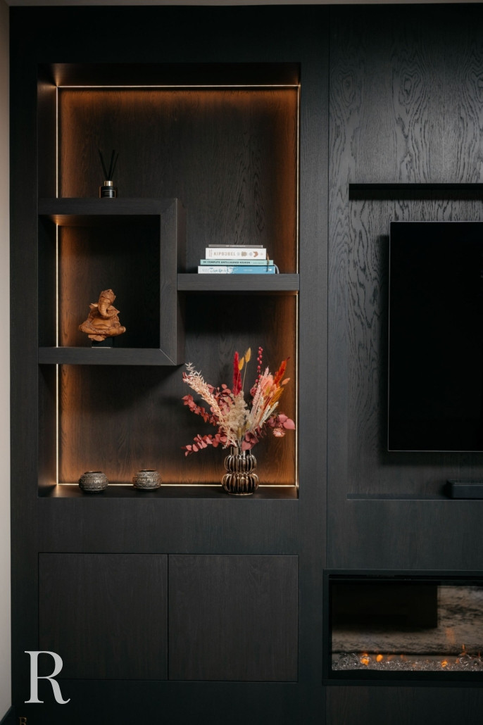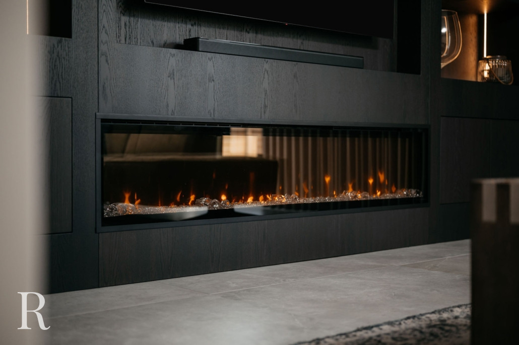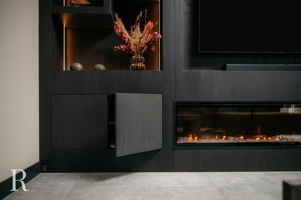 In Wanroij plaatsten we een zwarte cinewall met sfeerhaard. Wat een perfect plaatje!