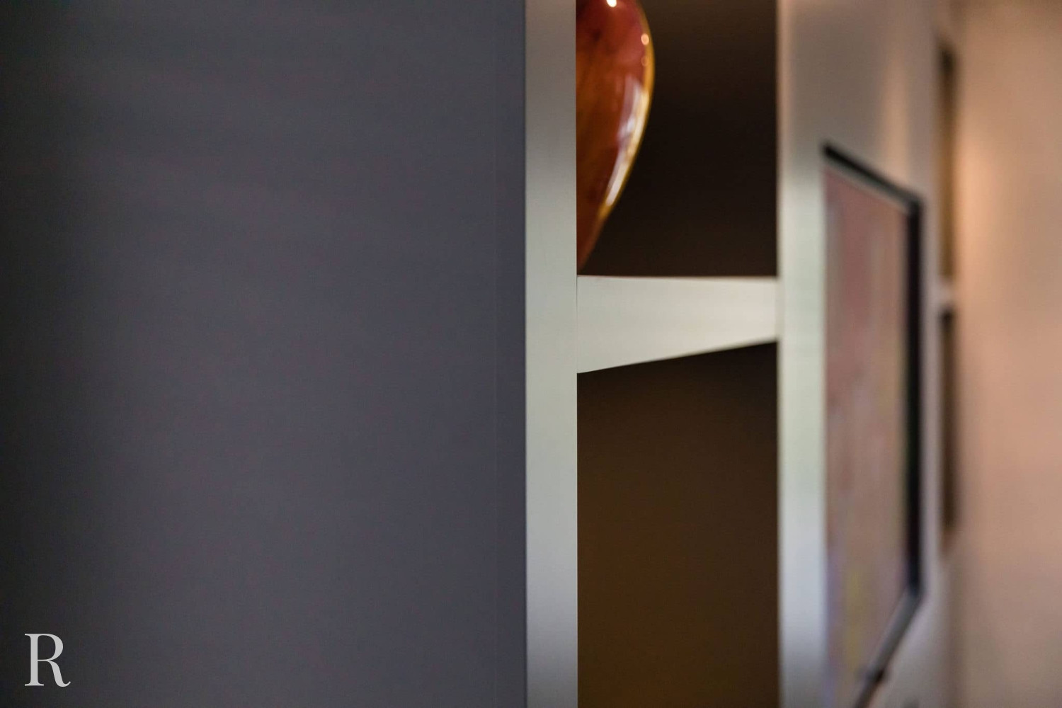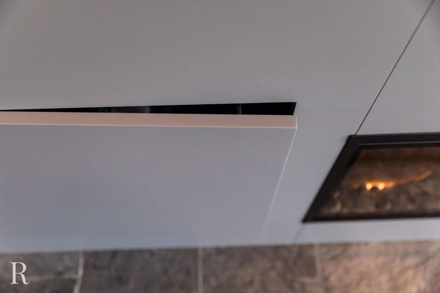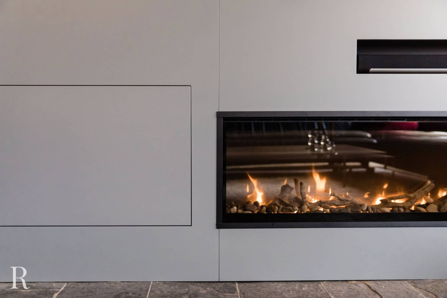 In Zwartsluis bouwden we een plafondhoge tv-wand met flatscreen tv, soundbar en sfeerhaard. Een karakteristiek meubel in een prachtige antracietkleur!