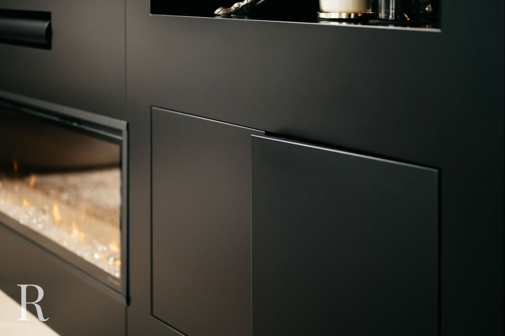 In Zwijndrecht plaatsten we een zwarte cinewall in de woonkamer én slaapkamer. Met een bijpassend dressoir in de hal creëerden we eenheid in deze woning!